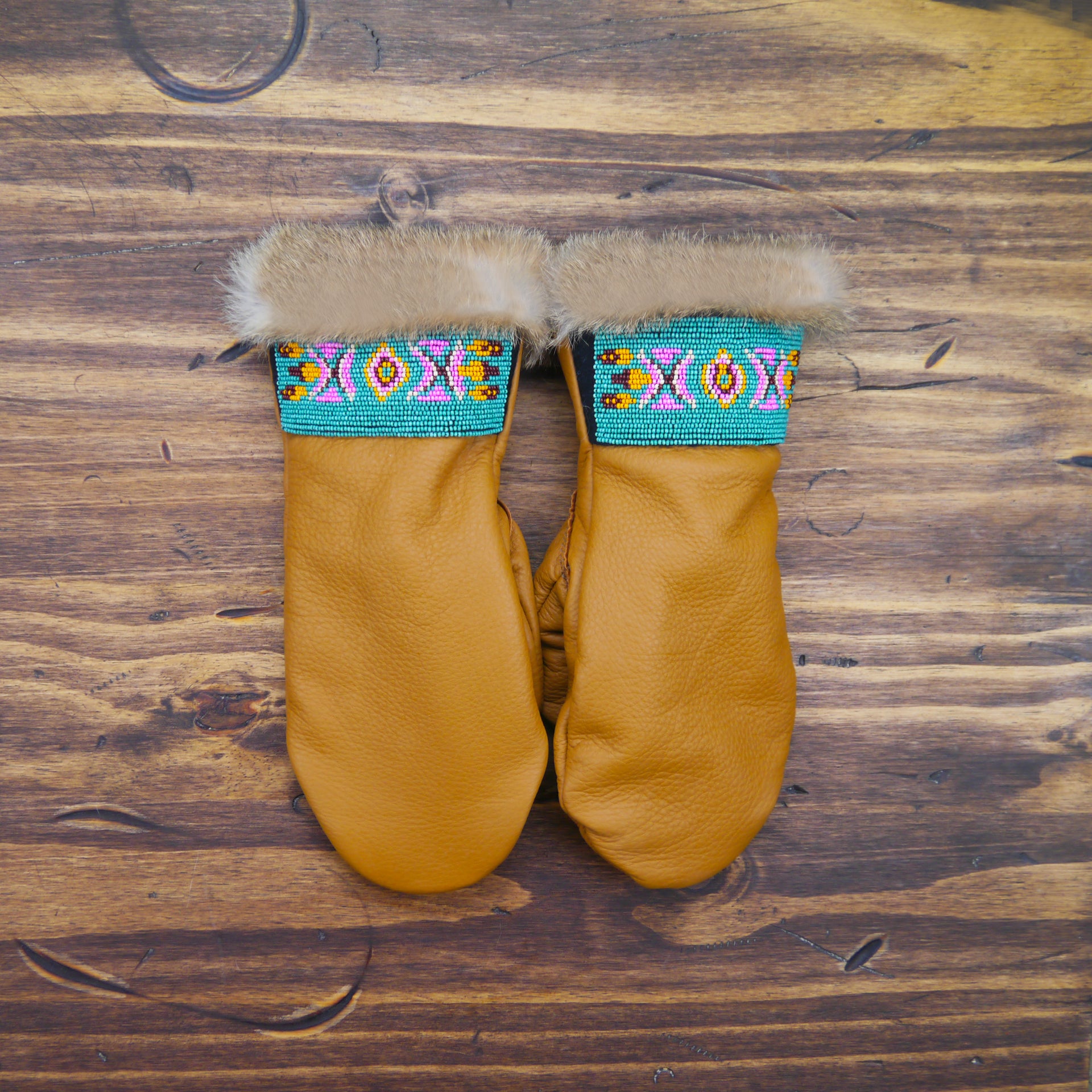 As each leather mitten is hand-sewn and uses natural materials, each mitten will possess slight variation in the look of the leather, fur and beadwork. Astis embraces these subtle differences and views them as unique gloves more akin to works of art.