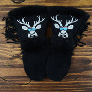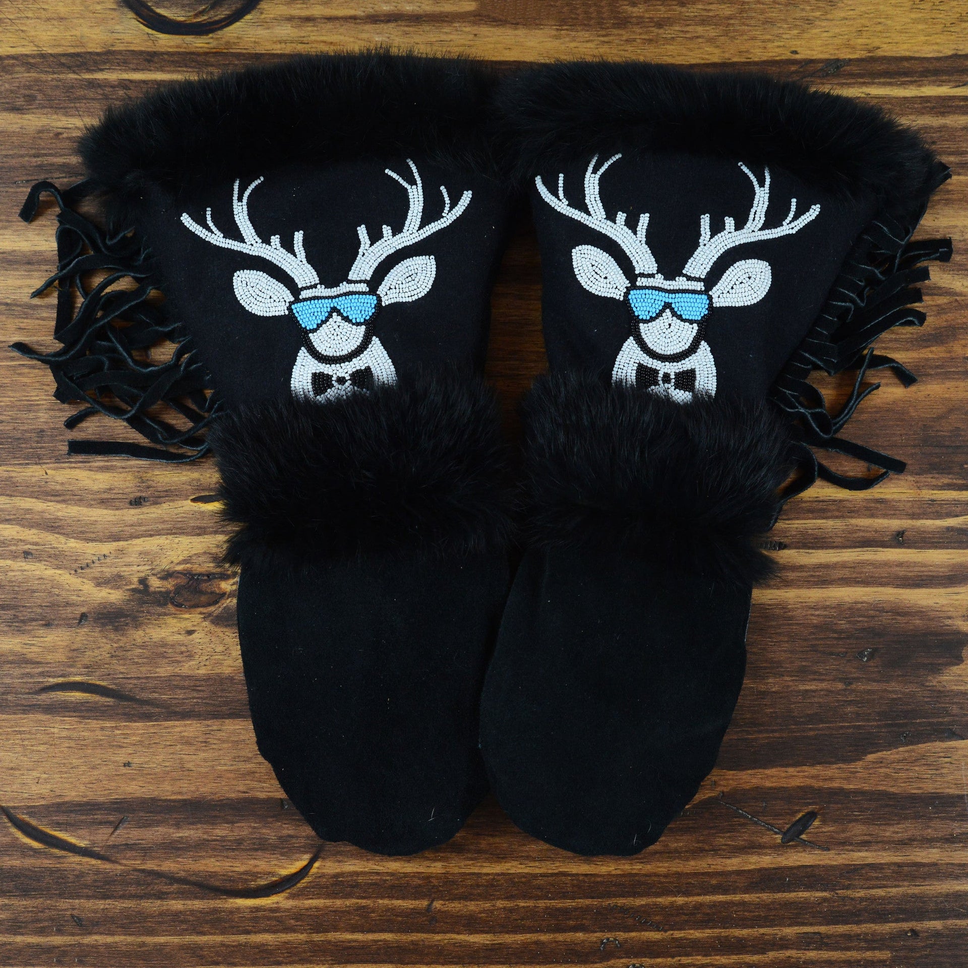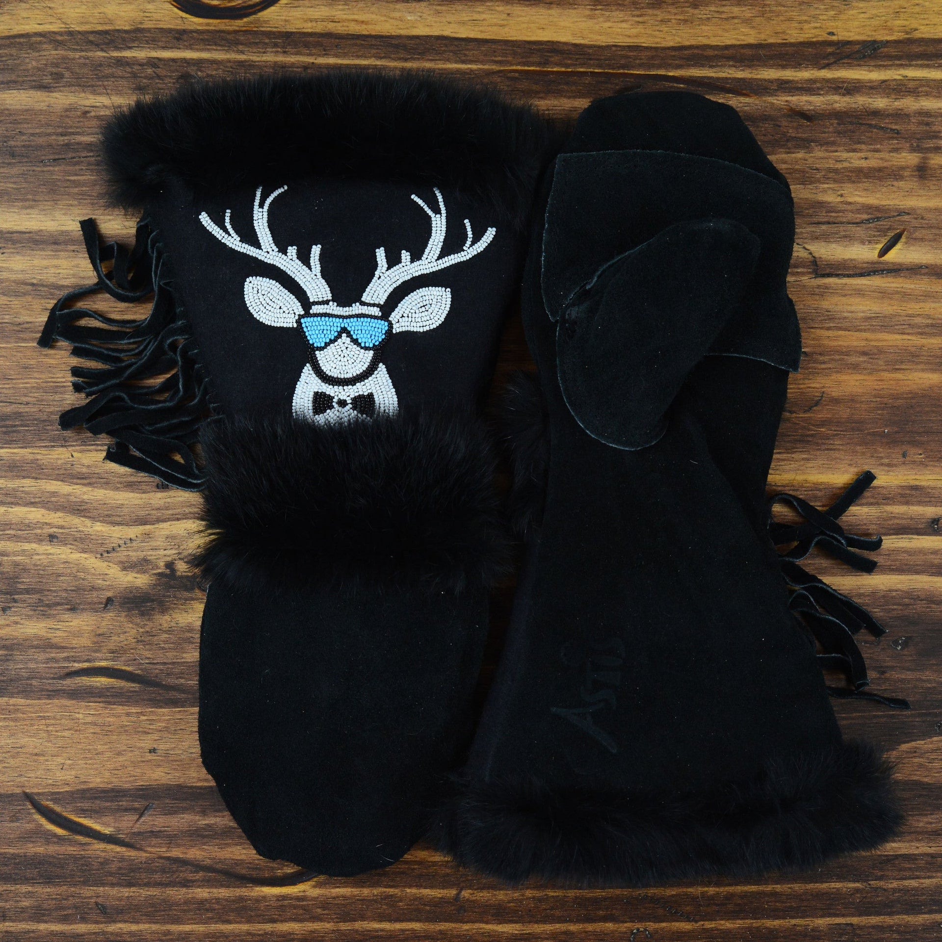 As each leather mitten is hand-sewn and uses natural materials, each leather mitten will possess slight variation in the look of the leather, beadwork, and fur trim. Astis embraces these subtle differences and views them as unique mittens more akin to works of art.