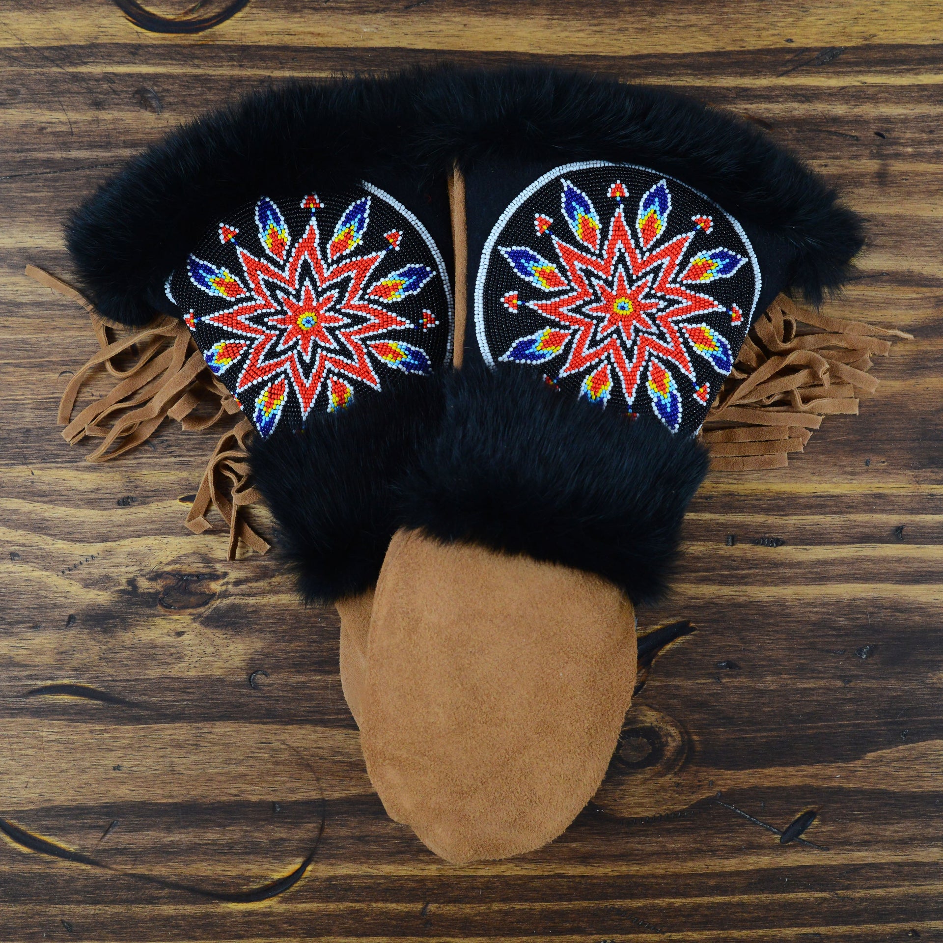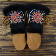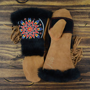As each leather mitten is hand-sewn and uses natural materials, each leather mitten will possess slight variation in the look of the leather, beadwork, and fur trim. Astis embraces these subtle differences and views them as unique mittens more akin to works of art.