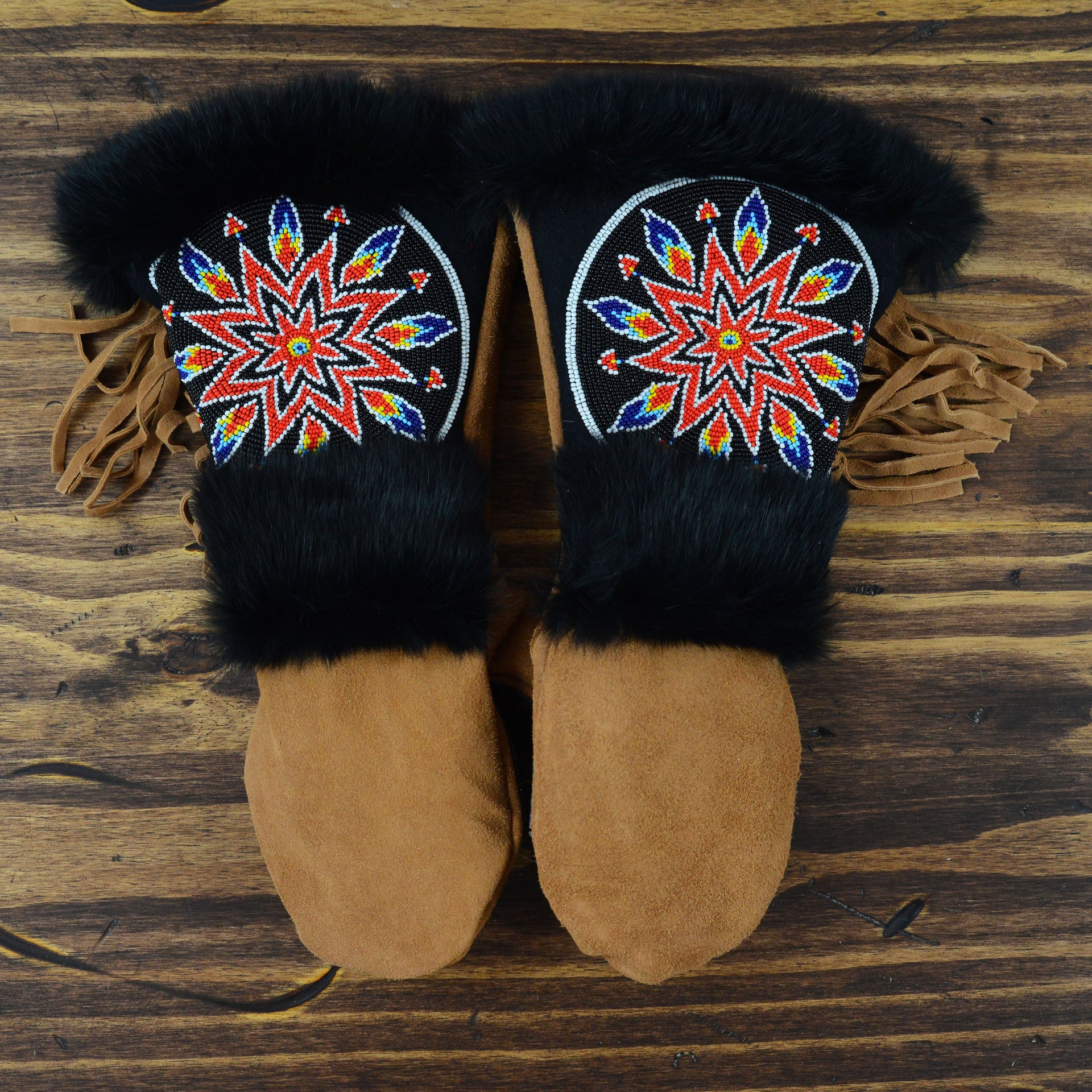 A comfortable, extremely warm mitten designed for any winter adventure, the Selous is not only beautiful, but designed with function in mind. The gauntlet allows for a jacket sleeve to slip inside without bunching while the fur around the cuff creates a seal to help keep the snow on the outside. The thumb and palm patches are added to provide extra protection at common wear points. The beadwork is pretty good looking as well.