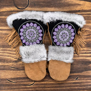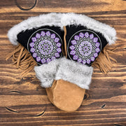 A comfortable, extremely warm mitten designed for any winter adventure, the Elise is not only beautiful, but designed with function in mind. The gauntlet allows for a jacket sleeve to slip inside without bunching while the fur around the cuff creates a seal to help keep the snow on the outside. The thumb and palm patches are added to provide extra protection at common wear points. The beadwork is pretty good looking as well.