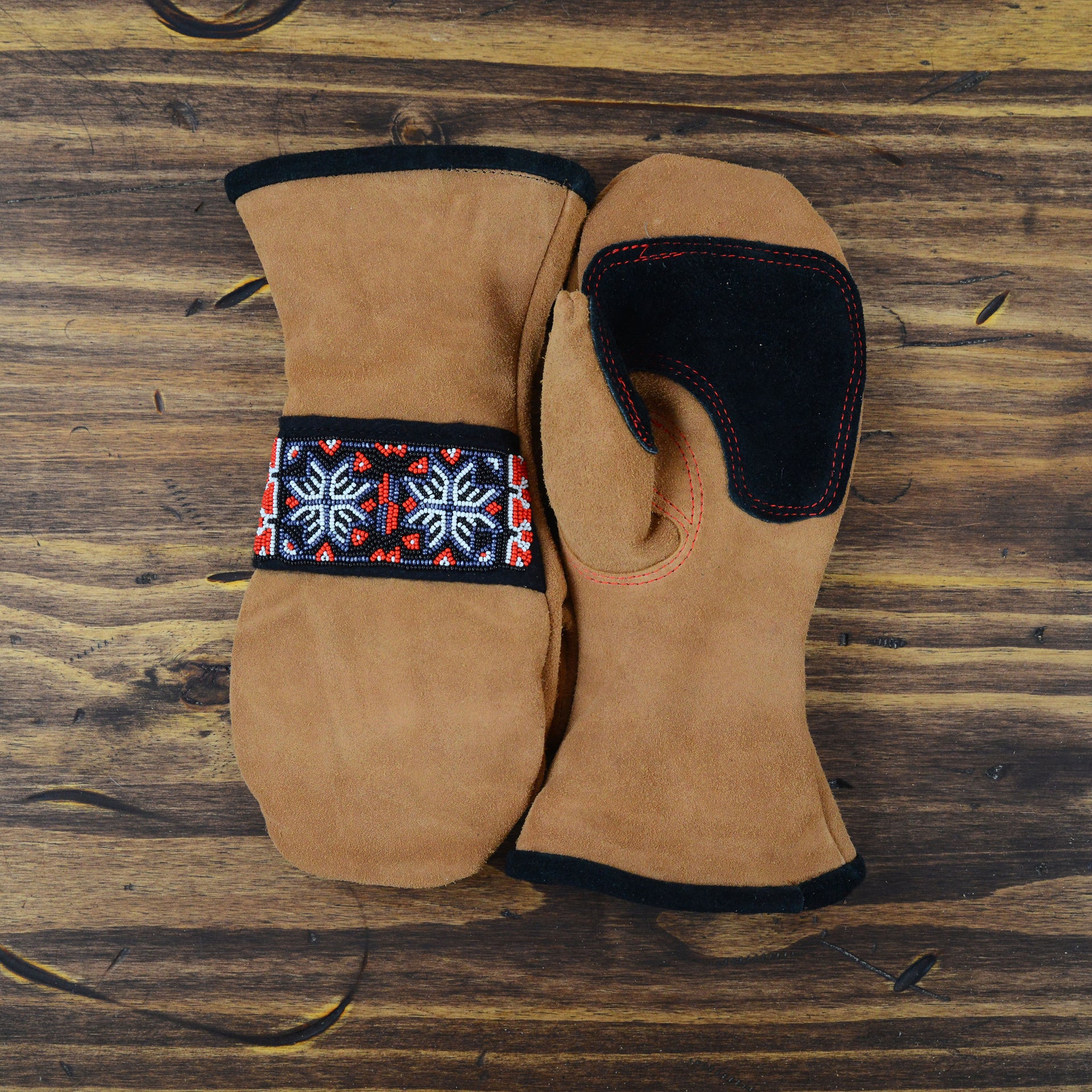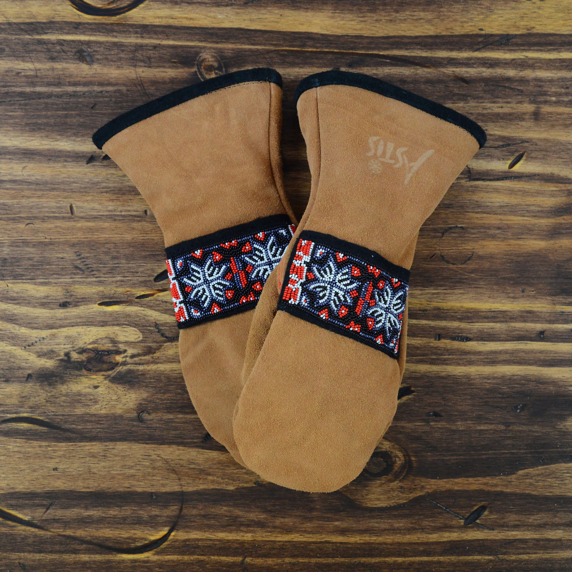 As each leather glove and mitten is hand-sewn and uses natural materials, each leather mitten will possess slight variation in the look of the leather and beadwork. Astis embraces these subtle differences and views them as unique gloves more akin to works of art.