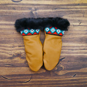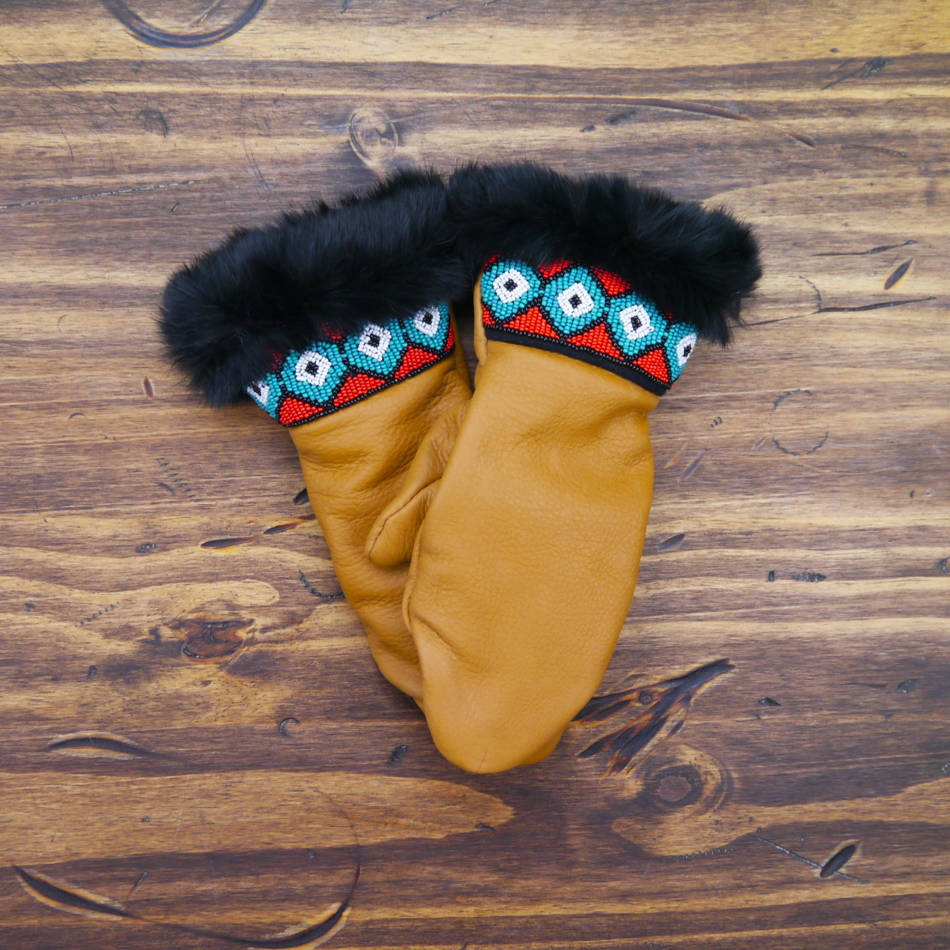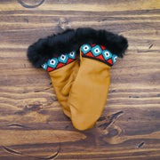 As each leather mitten is hand-sewn and uses natural materials, each mitten will possess slight variation in the look of the leather, fur and beadwork. Astis embraces these subtle differences and views them as unique gloves more akin to works of art.