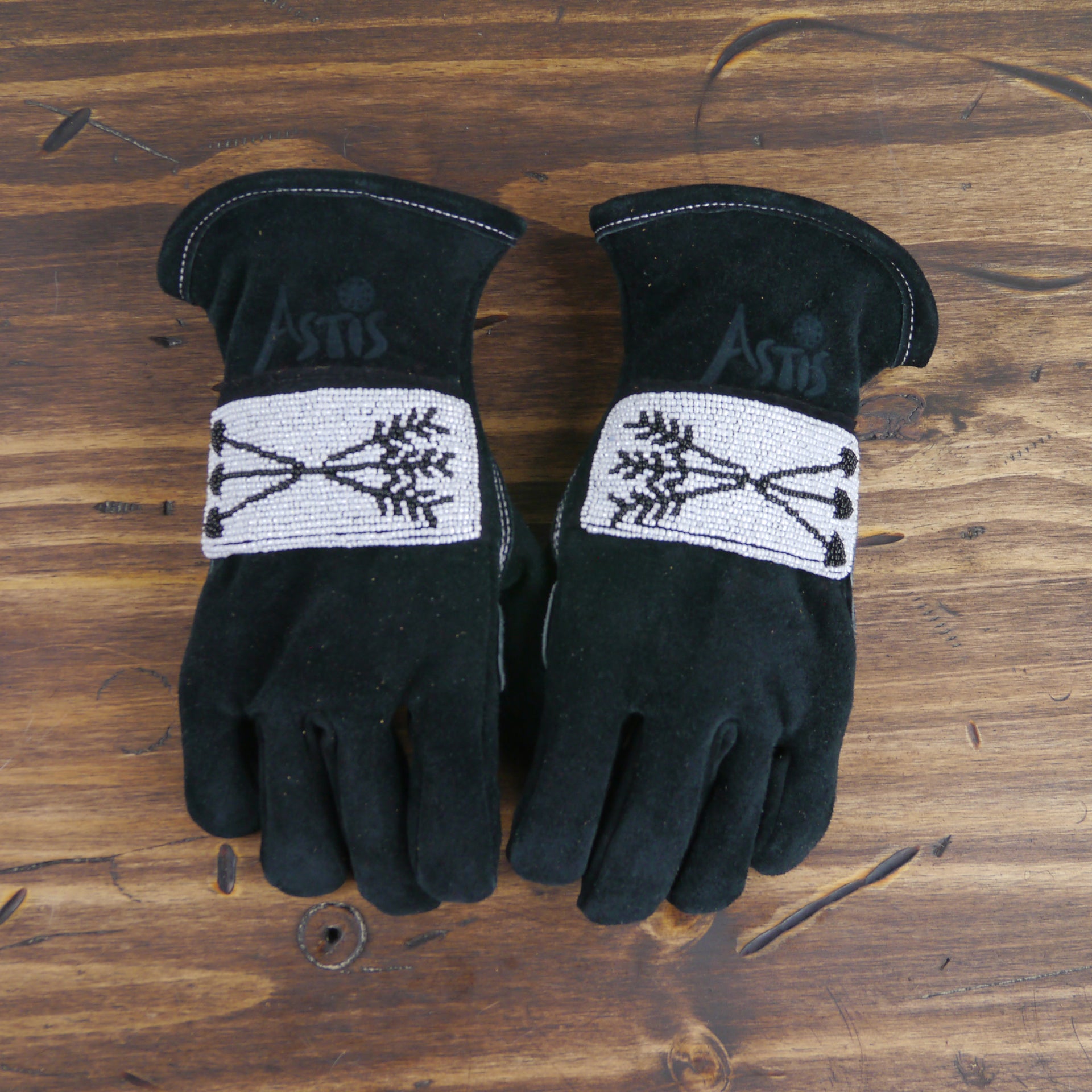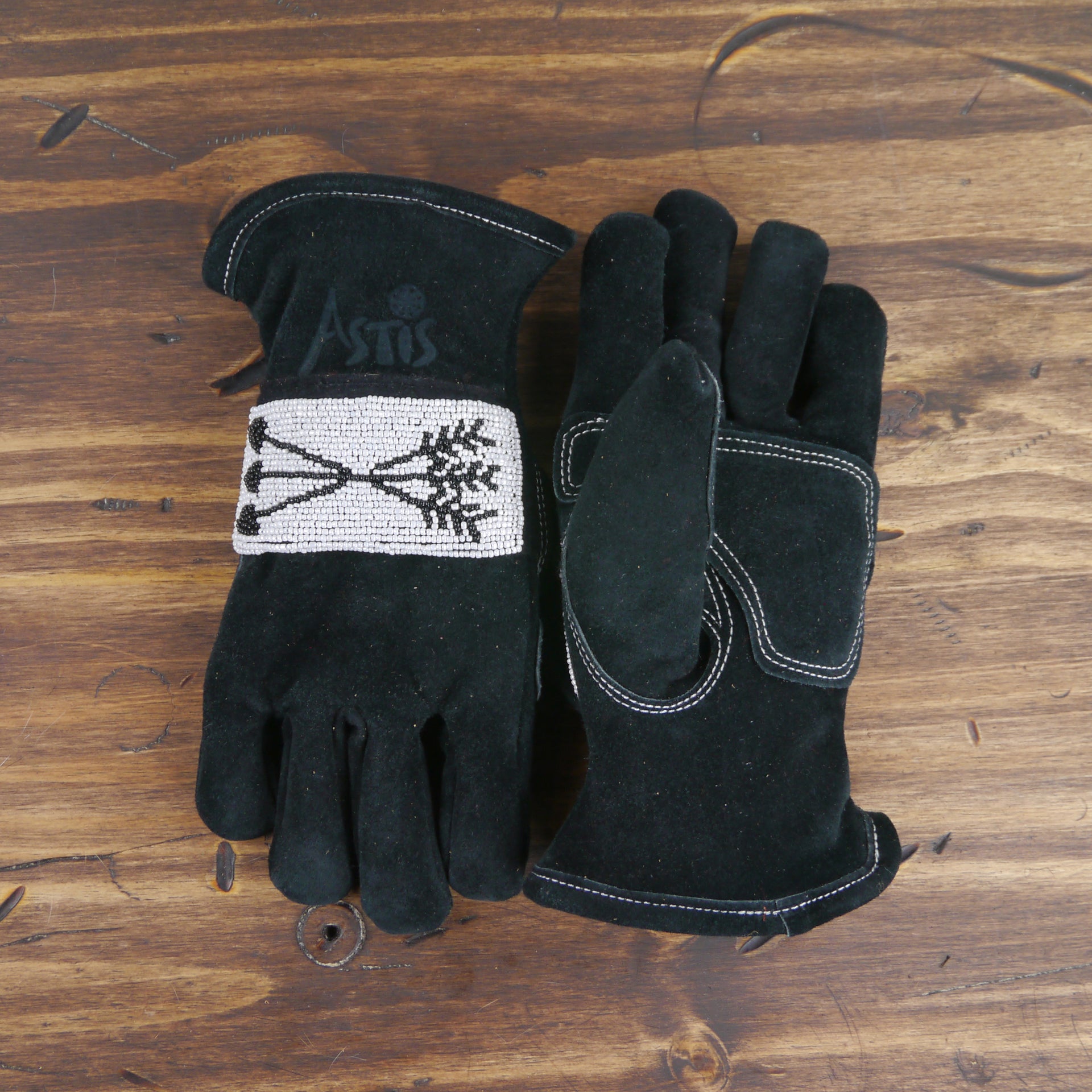 As each leather glove is hand-sewn and uses natural materials, each leather mitten will possess slight variation in the look of the leather and beadwork. Astis embraces these subtle differences and views them as unique gloves more akin to works of art.
