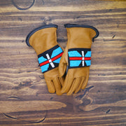 Displaying beadwork across the back of the hand, these acorn brown featherweight leather gloves are named for the Gilded Flicker.