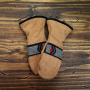 Astis leather mittens are hand-sewn in the USA from dark brown high-quality suede leather with hand-stitched beadwork and are lined with Polartec® High Loft insulation. Working directly with a tannery in the USA, we developed a suede leather, injected with silicone during the tanning process for further waterproofing, that is extremely durable yet retains great dexterity.