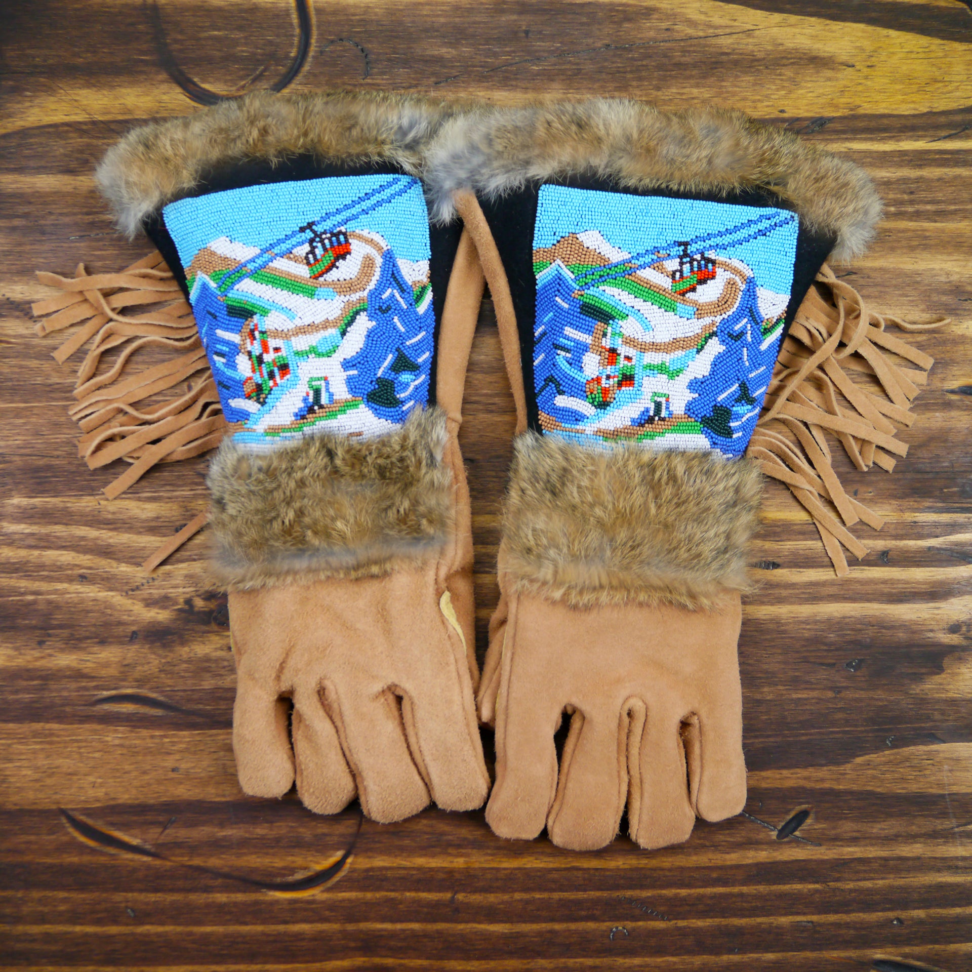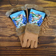 As each leather mitten is hand-sewn and uses natural materials, each leather mitten will possess slight variation in the look of the leather, beadwork, and fur trim. Astis embraces these subtle differences and views them as unique mittens more akin to works of art.