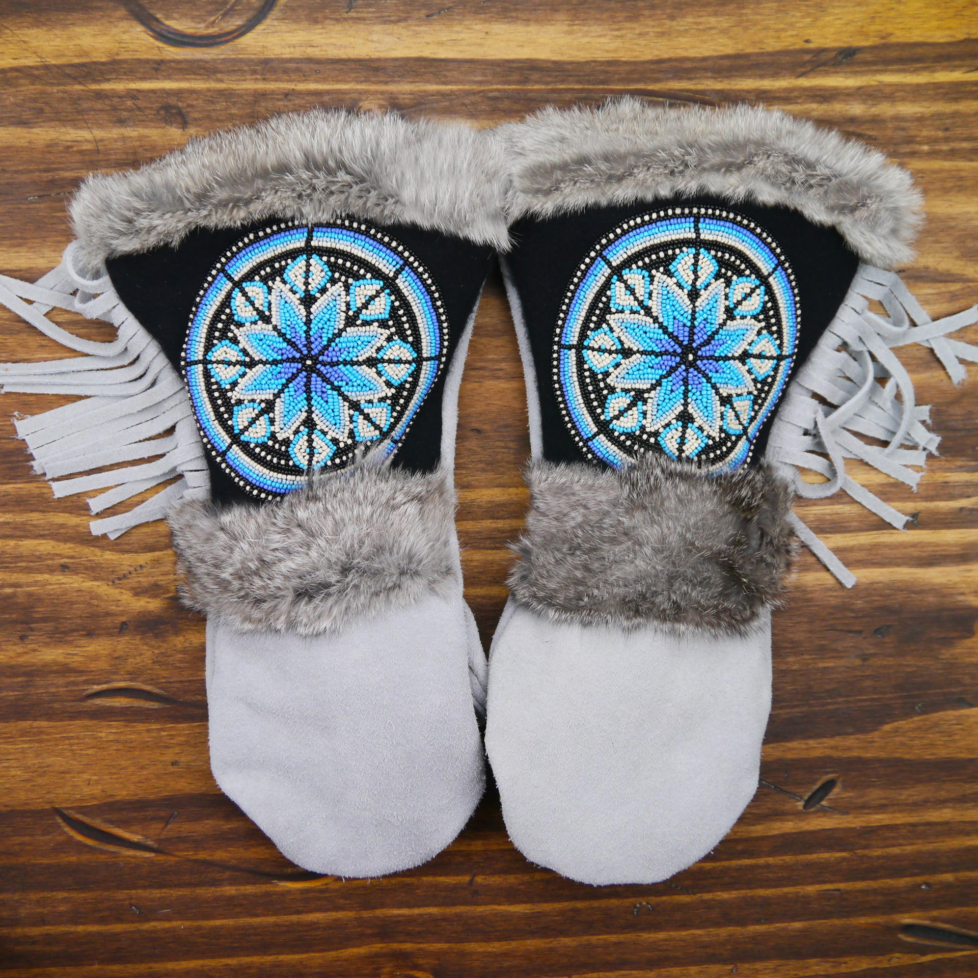 As each leather mitten is hand-sewn and uses natural materials, each leather mitten will possess slight variation in the look of the leather, beadwork, and fur trim. Astis embraces these subtle differences and views them as unique mittens more akin to works of art.