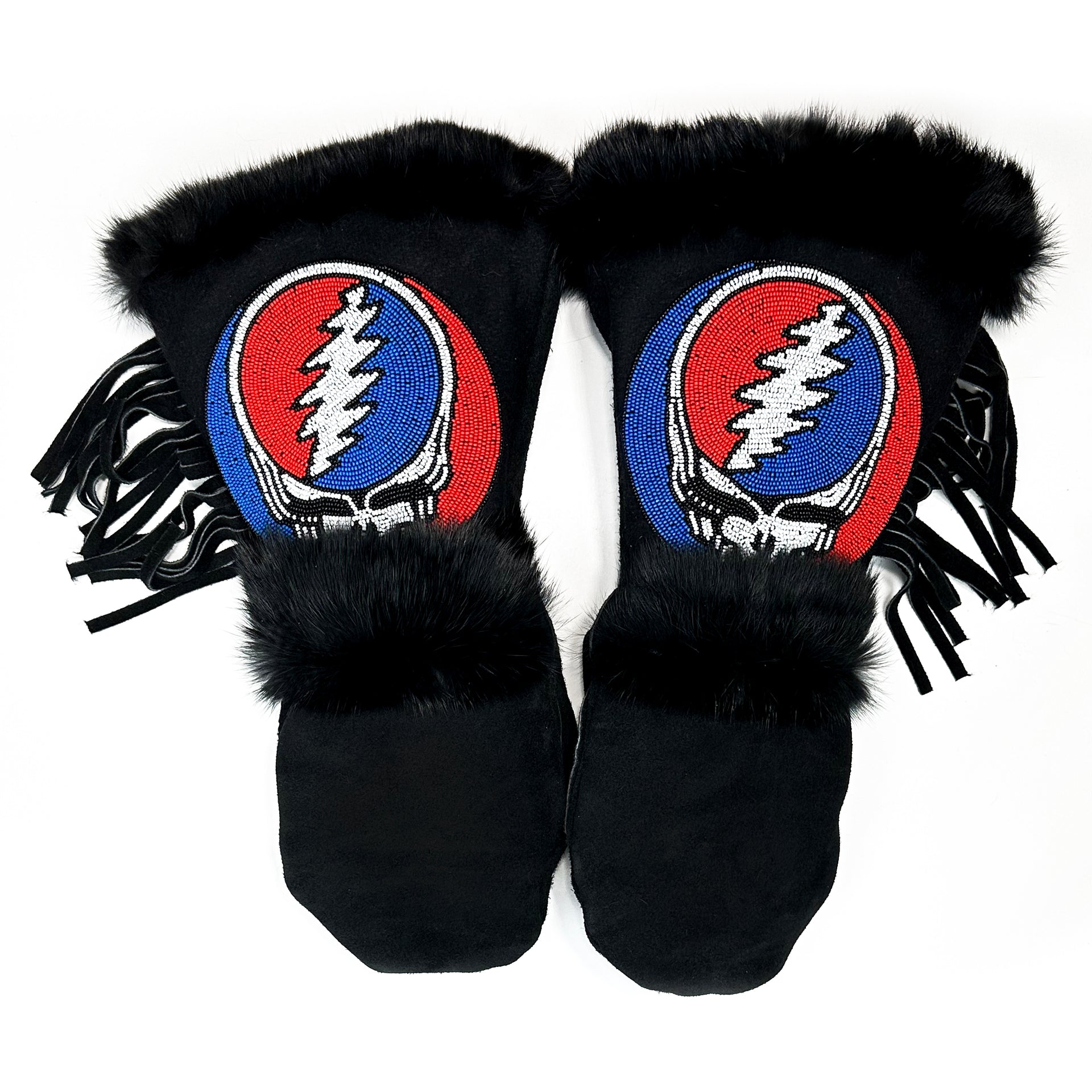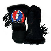A comfortable, extremely warm mitten designed for any winter adventure, the Limited Co-Lab: Steal Your Face (Black) is not only beautiful, but designed with function in mind. The gauntlet allows for a jacket sleeve to slip inside without bunching while the fur around the cuff creates a seal to help keep the snow on the outside. The thumb and palm patches are added to provide extra protection at common wear points. The beadwork is pretty good looking as well.