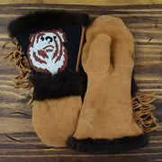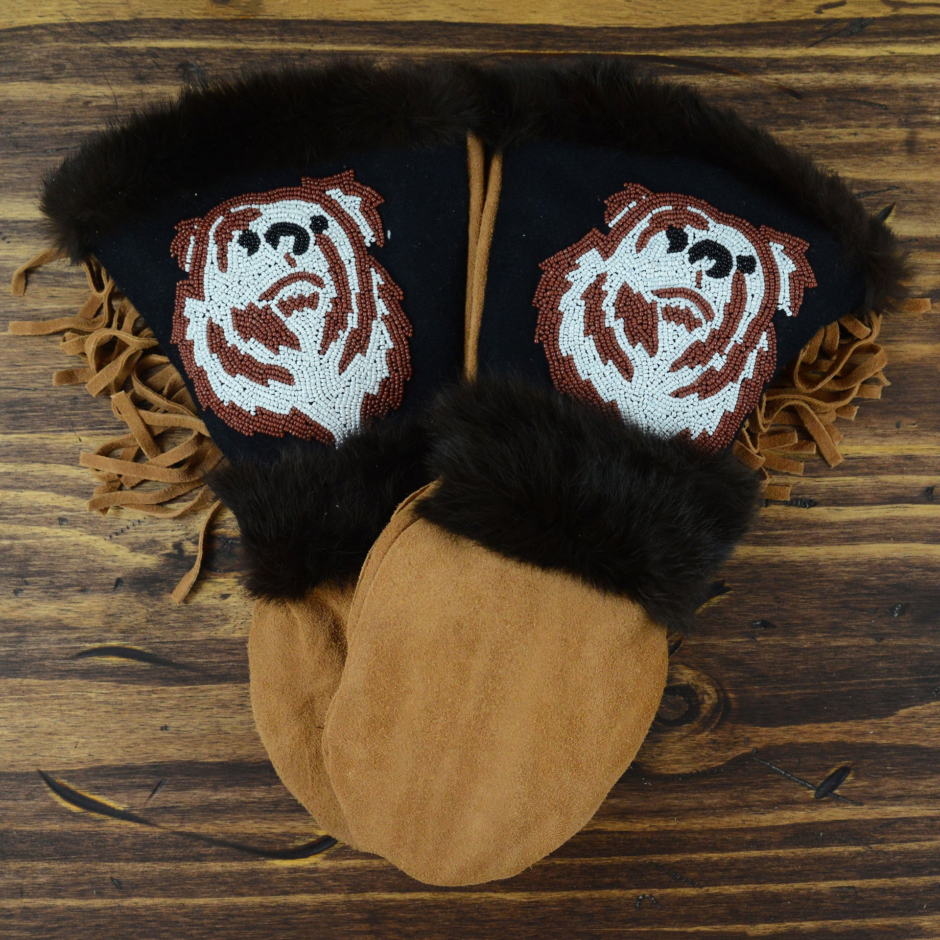 A comfortable, extremely warm mitten designed for any winter adventure, the Mawson is not only beautiful, but designed with function in mind. The gauntlet allows for a jacket sleeve to slip inside without bunching while the fur around the cuff creates a seal to help keep the snow on the outside. The thumb and palm patches are added to provide extra protection at common wear points. The beadwork is pretty good looking as well.
