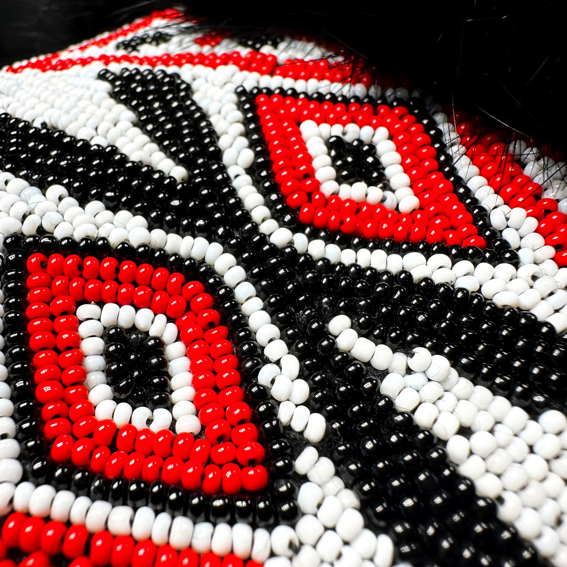 The name 'Nebesiiwoo,' meaning 'Grandfather' in the Arapaho language, sets the stage for a heartfelt tribute to Stormy's Grandfather, Mark SoldierWolf. These mittens transcend mere winter wear to become a canvas of remembrance and homage.