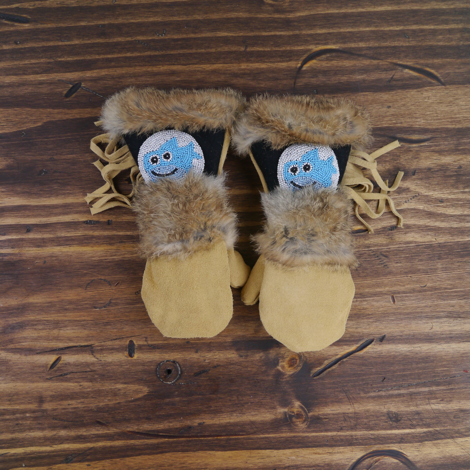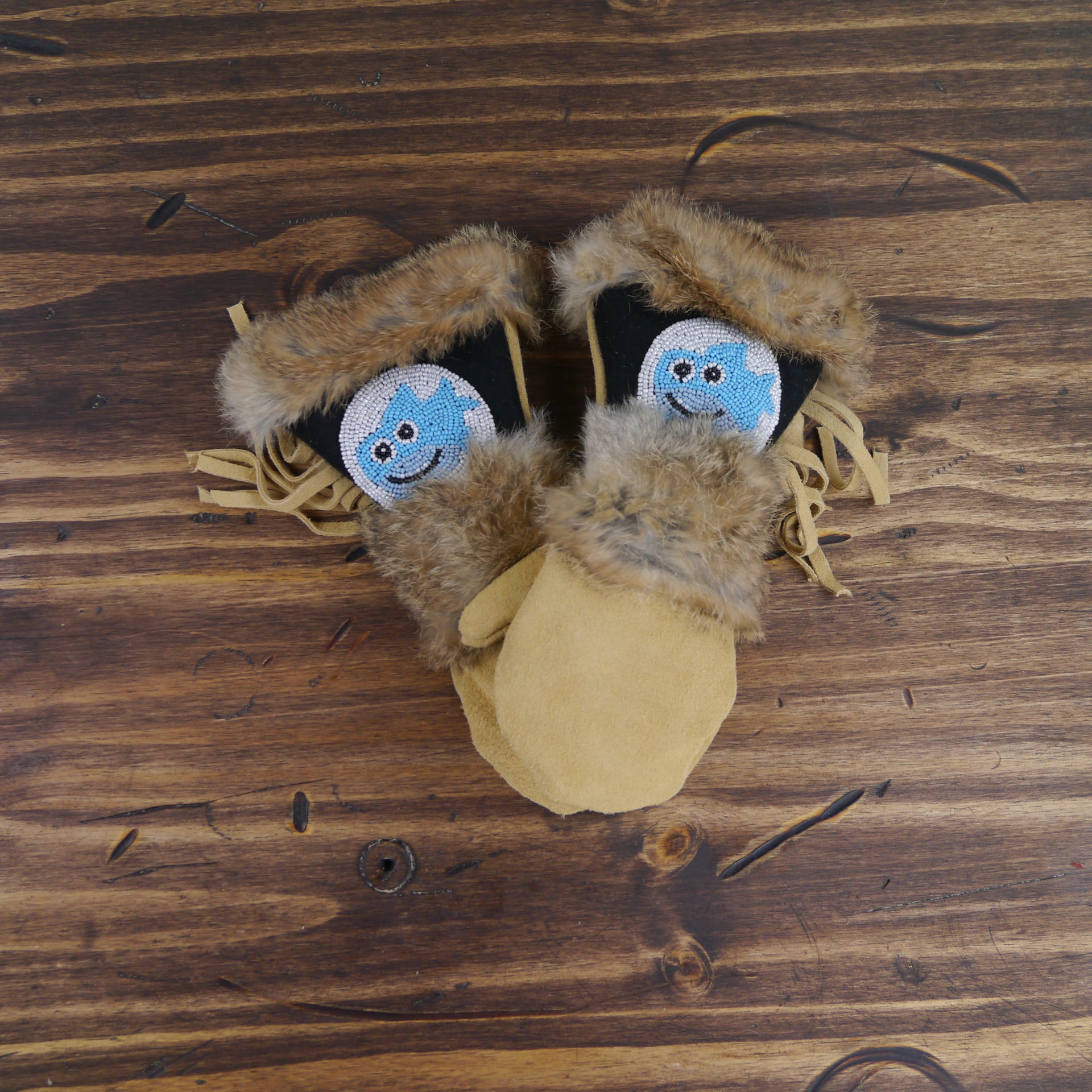 As each leather mitten is hand-sewn and uses natural materials, each leather mitten will possess slight variation in the look of the leather, beadwork, and fur trim. Astis embraces these subtle differences and views them as unique mittens more akin to works of art.