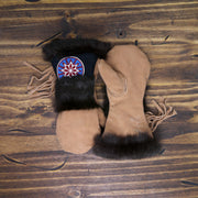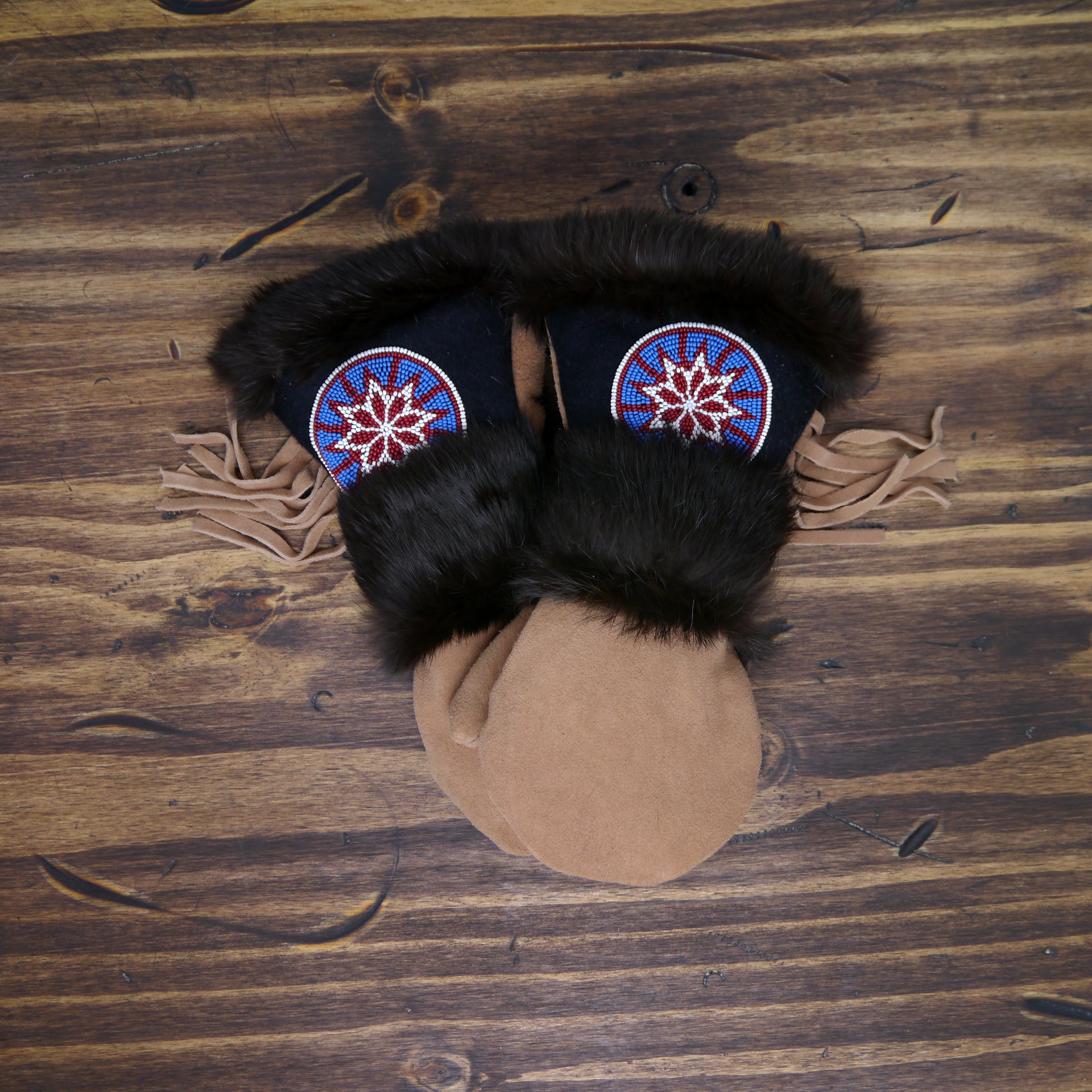 As each leather mitten is hand-sewn and uses natural materials, each leather mitten will possess slight variation in the look of the leather, beadwork, and fur trim. Astis embraces these subtle differences and views them as unique mittens more akin to works of art.