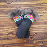 As each leather mitten is hand-sewn and uses natural materials, each mitten will possess slight variation in the look of the leather, fur and beadwork. Astis embraces these subtle differences and views them as unique gloves more akin to works of art.