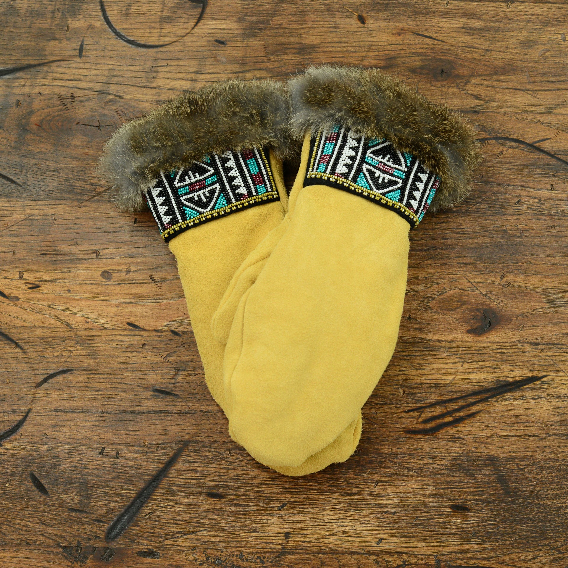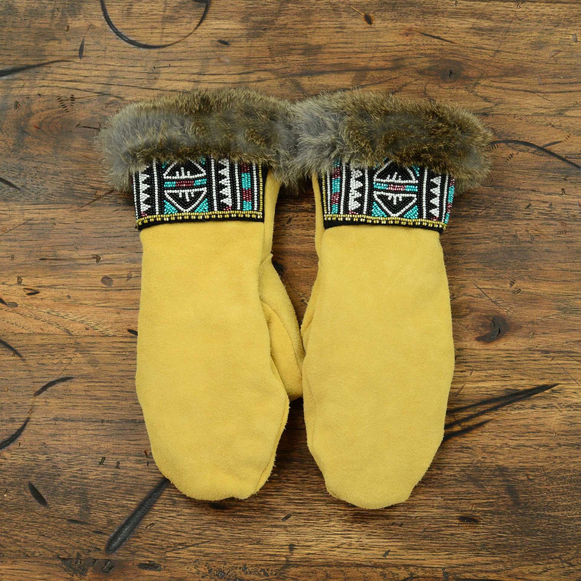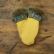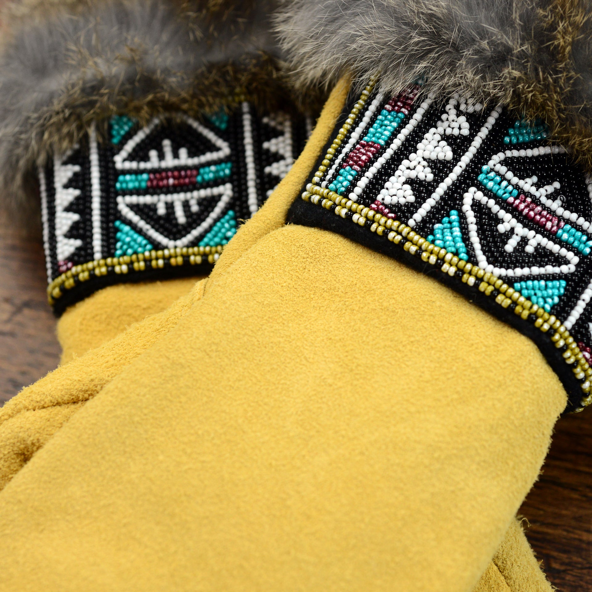 As each leather mitten is hand-sewn and uses natural materials, each leather mitten will possess slight variation in the look of the leather, beadwork, and fur trim. Astis embraces these subtle differences and views them as unique mittens more akin to works of art.