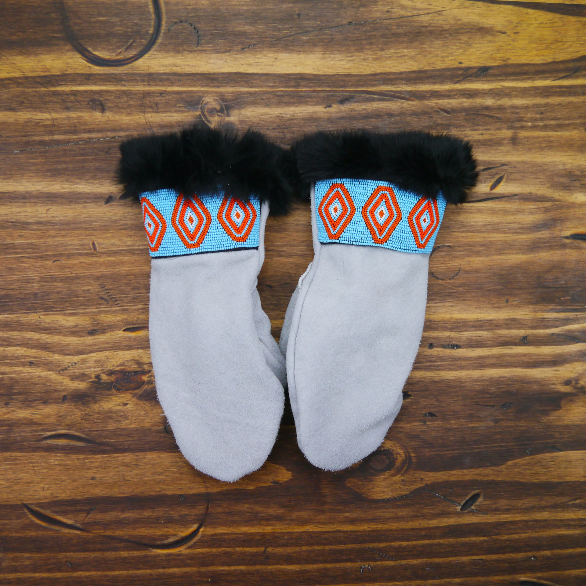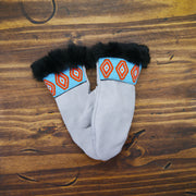 As each leather mitten is hand-sewn and uses natural materials, each leather mitten will possess slight variation in the look of the leather, beadwork and fur. Astis embraces these subtle differences and views them as unique mittens more akin to works of art.