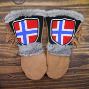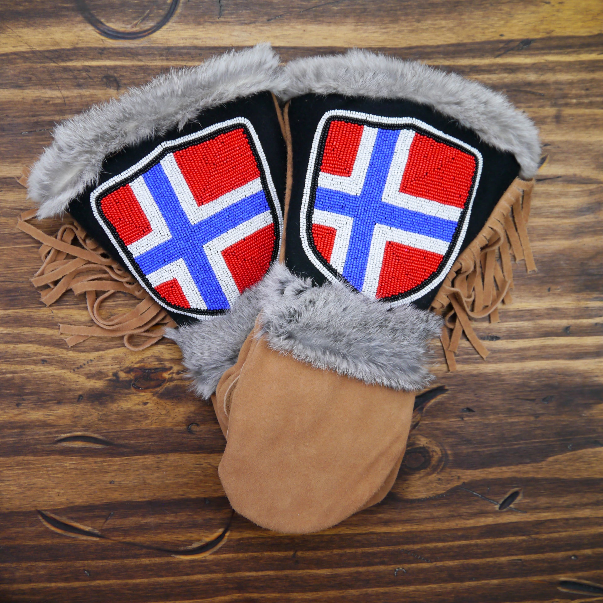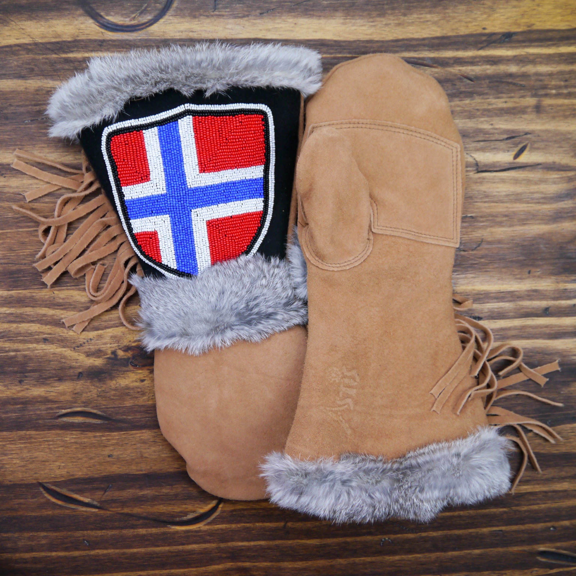 A comfortable, extremely warm mitten designed for any winter adventure, the Erikson is not only beautiful, but designed with function in mind. The gauntlet allows for a jacket sleeve to slip inside without bunching while the fur around the cuff creates a seal to help keep the snow on the outside. The thumb and palm patches are added to provide extra protection at common wear points. The beadwork is pretty good looking as well.