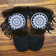 A comfortable, extremely warm mitten designed for any winter adventure, the Grant is not only beautiful, but designed with function in mind. The gauntlet allows for a jacket sleeve to slip inside without bunching while the fur around the cuff creates a seal to help keep the snow on the outside. The thumb and palm patches are added to provide extra protection at common wear points. The beadwork is pretty good looking as well.
