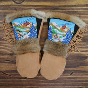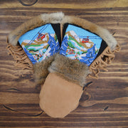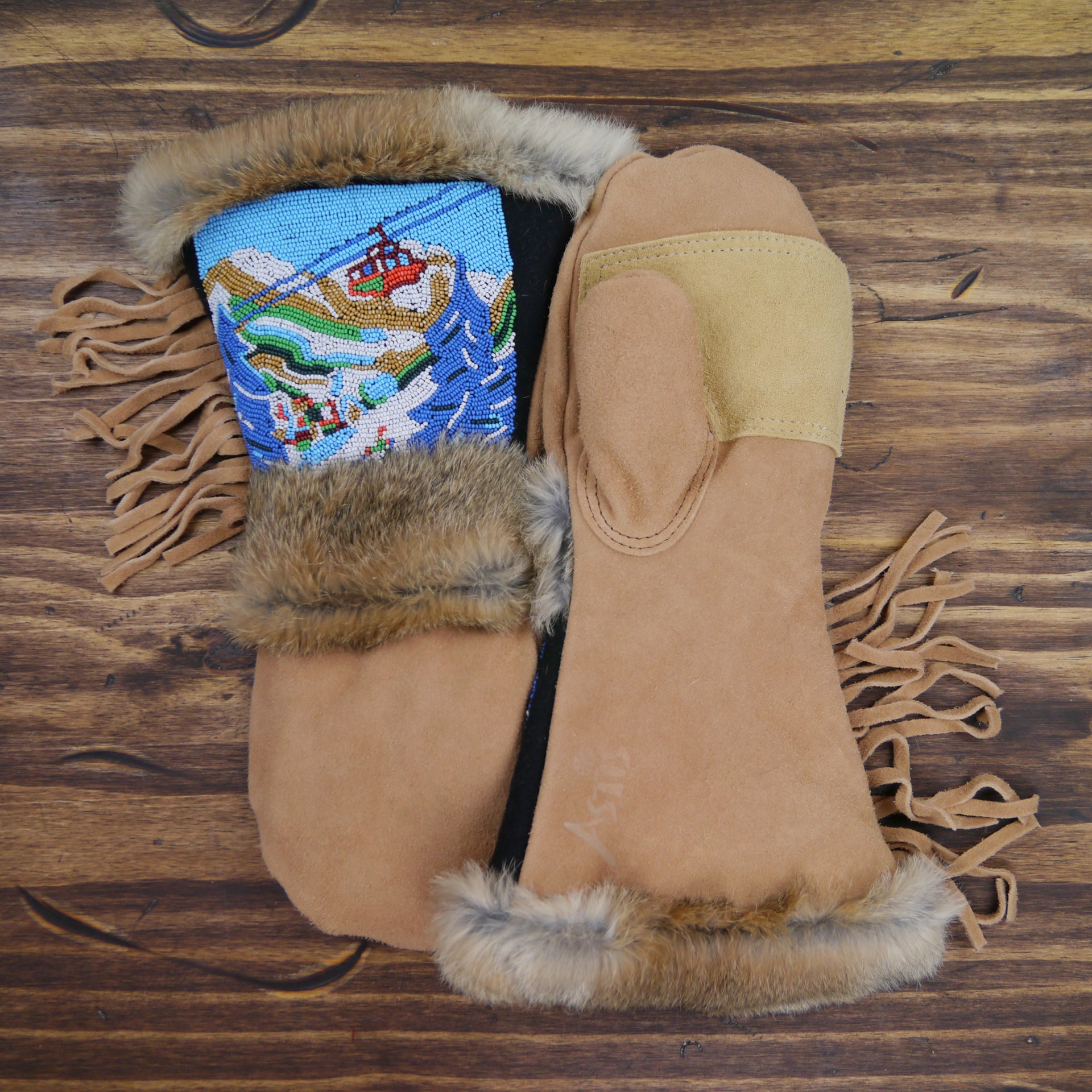 A comfortable, extremely warm mitten designed for any winter adventure, the Herbert is not only beautiful, but designed with function in mind. The gauntlet allows for a jacket sleeve to slip inside without bunching while the fur around the cuff creates a seal to help keep the snow on the outside. The thumb and palm patches are added to provide extra protection at common wear points. The beadwork is pretty good looking as well.
