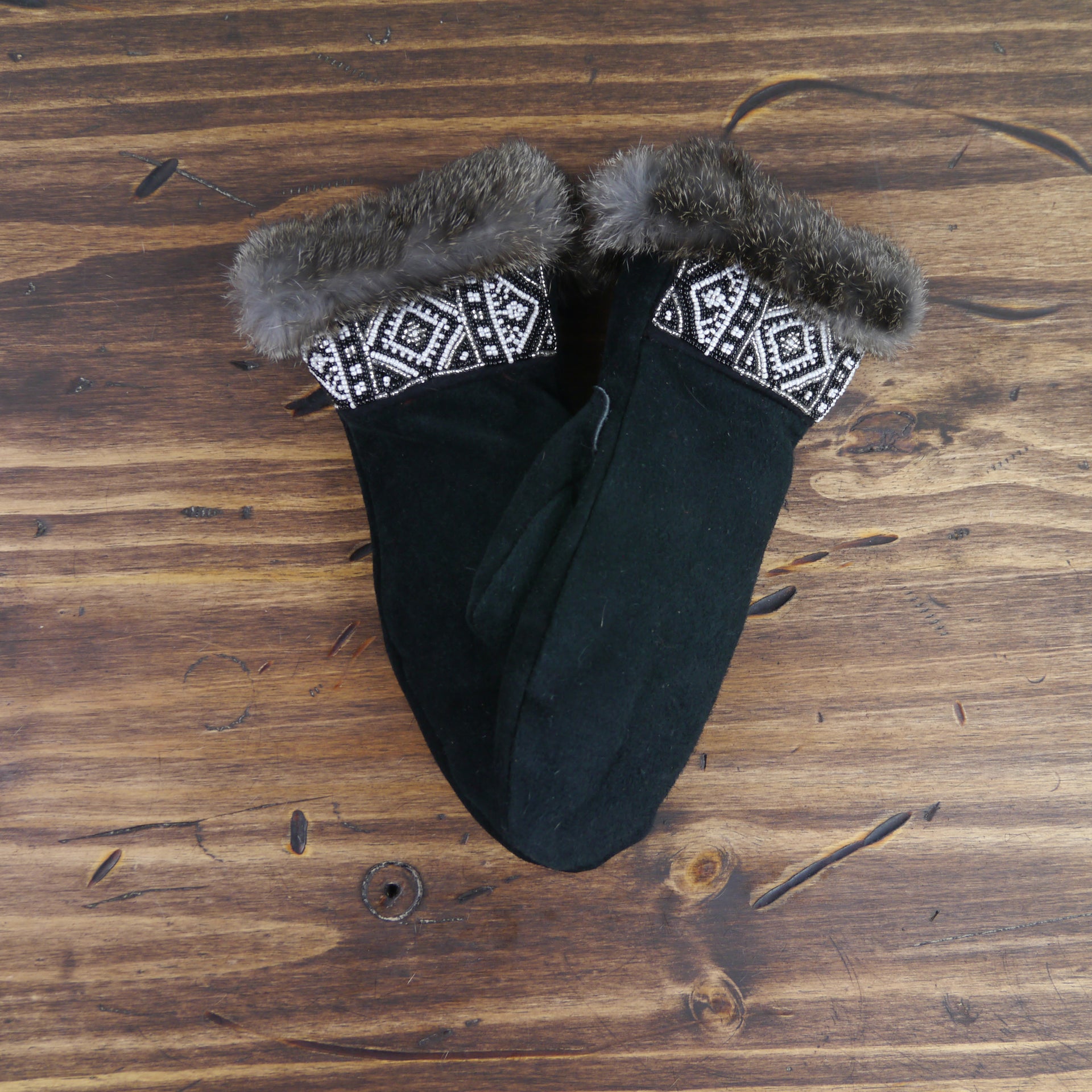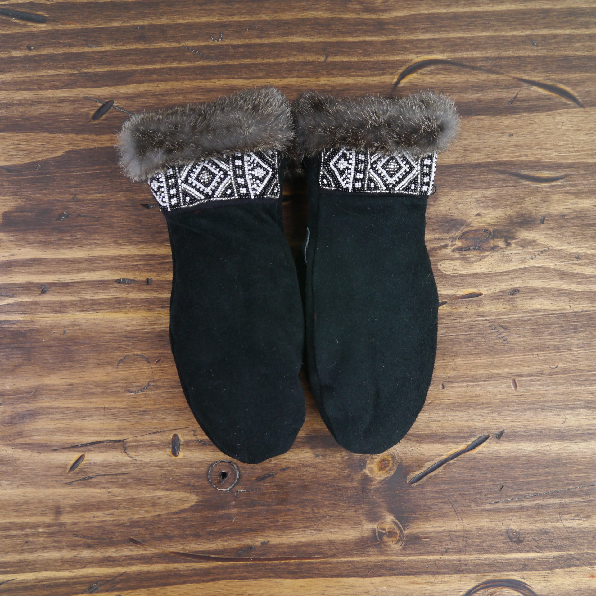 As each leather mitten is hand-sewn and uses natural materials, each leather mitten will possess slight variation in the look of the leather, beadwork, and fur trim. Astis embraces these subtle differences and views them as unique mittens more akin to works of art.