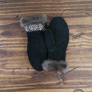 Astis leather mittens are hand-sewn in the USA from high-quality black suede leather with hand-stitched beadwork on the wrist and are lined with Polartec® High Loft insulation. Working directly with a tannery in the USA, we developed a suede leather, injected with silicone during the tanning process for further waterproofing, that is extremely durable yet retains great dexterity.