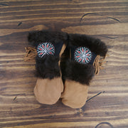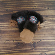 As each leather mitten is hand-sewn and uses natural materials, each leather mitten will possess slight variation in the look of the leather, beadwork, and fur trim. Astis embraces these subtle differences and views them as unique mittens more akin to works of art.