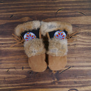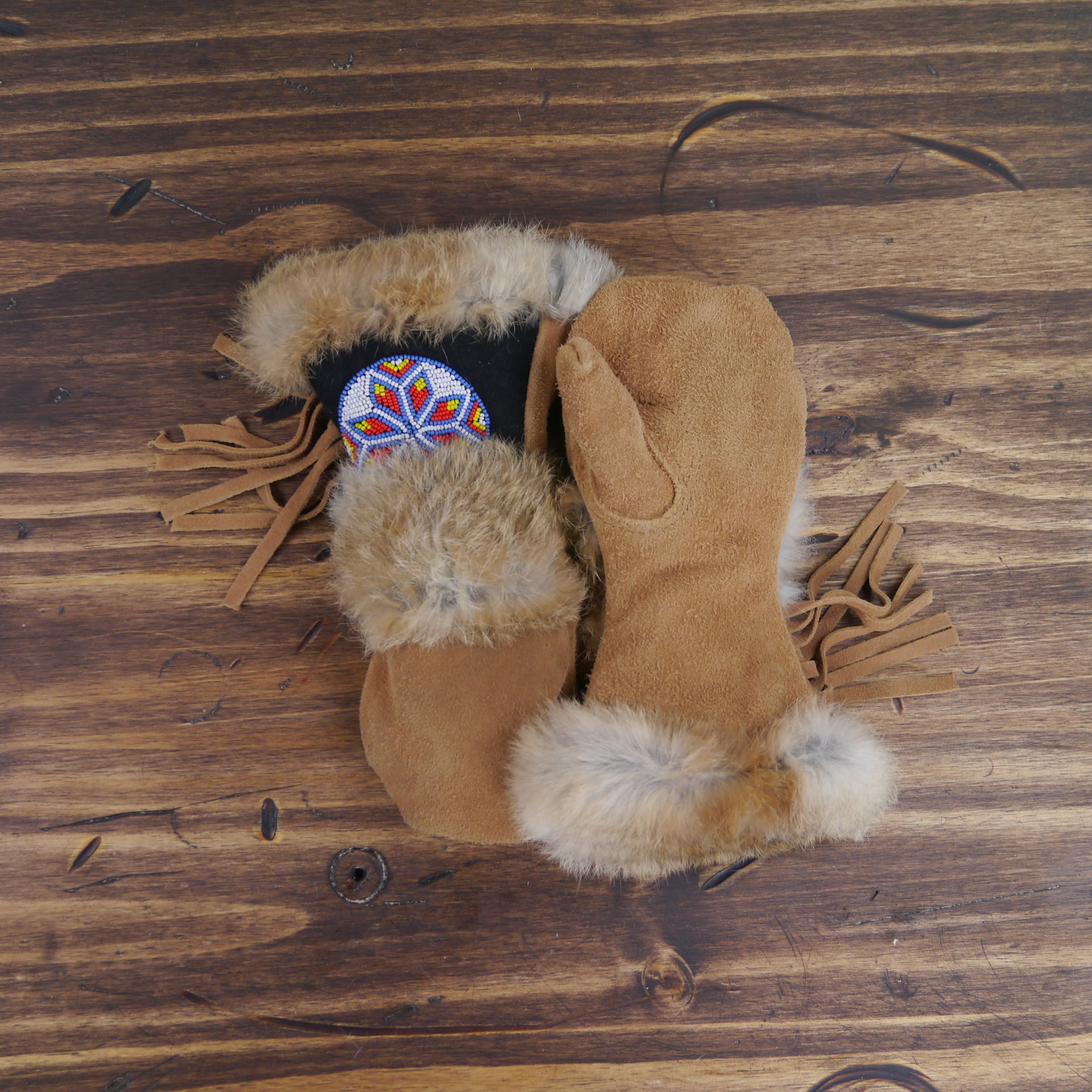 As each leather mitten is hand-sewn and uses natural materials, each leather mitten will possess slight variation in the look of the leather, beadwork, and fur trim. Astis embraces these subtle differences and views them as unique mittens more akin to works of art.