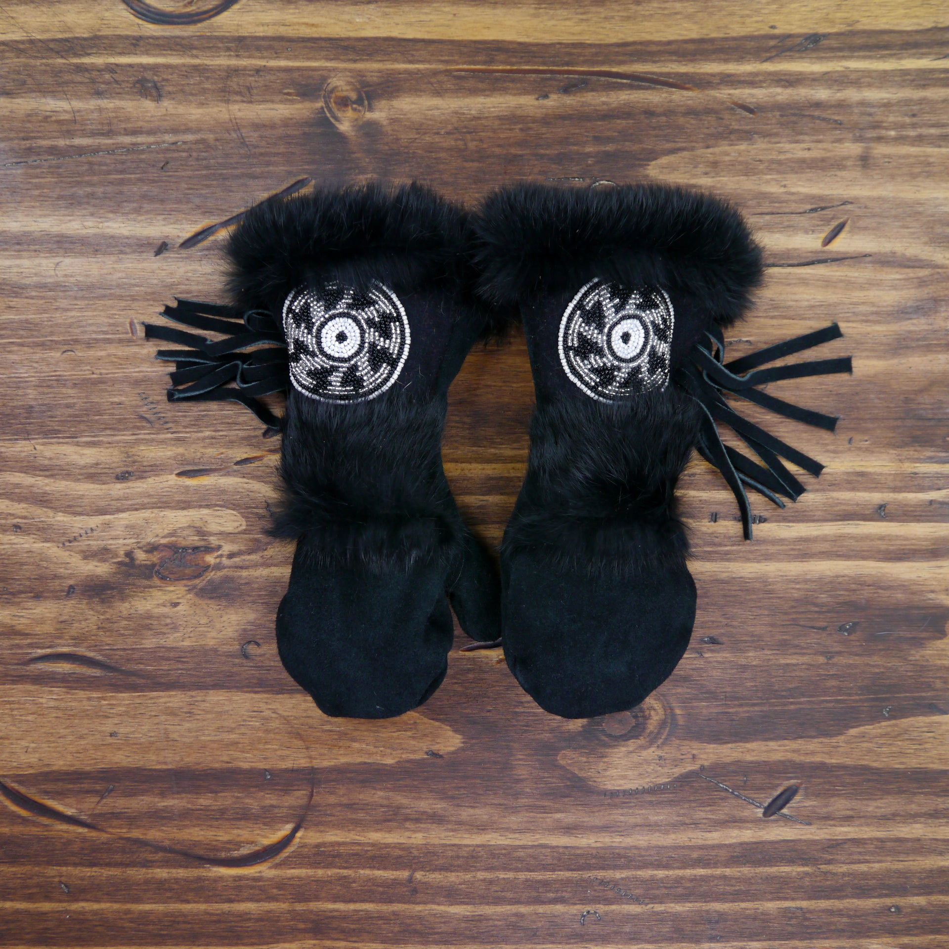 As each leather mitten is hand-sewn and uses natural materials, each leather mitten will possess slight variation in the look of the leather, beadwork, and fur trim. Astis embraces these subtle differences and views them as unique mittens more akin to works of art.