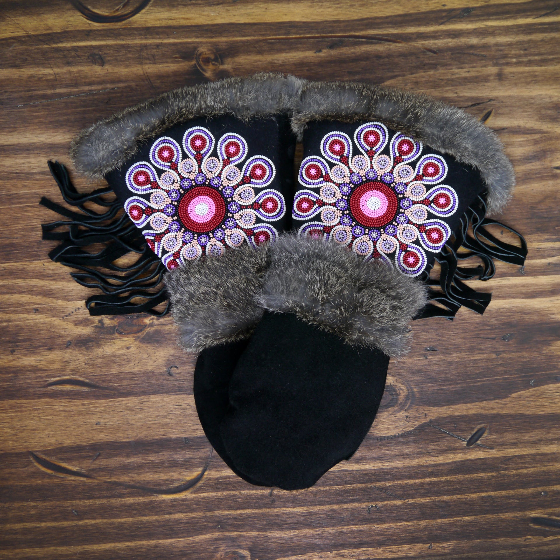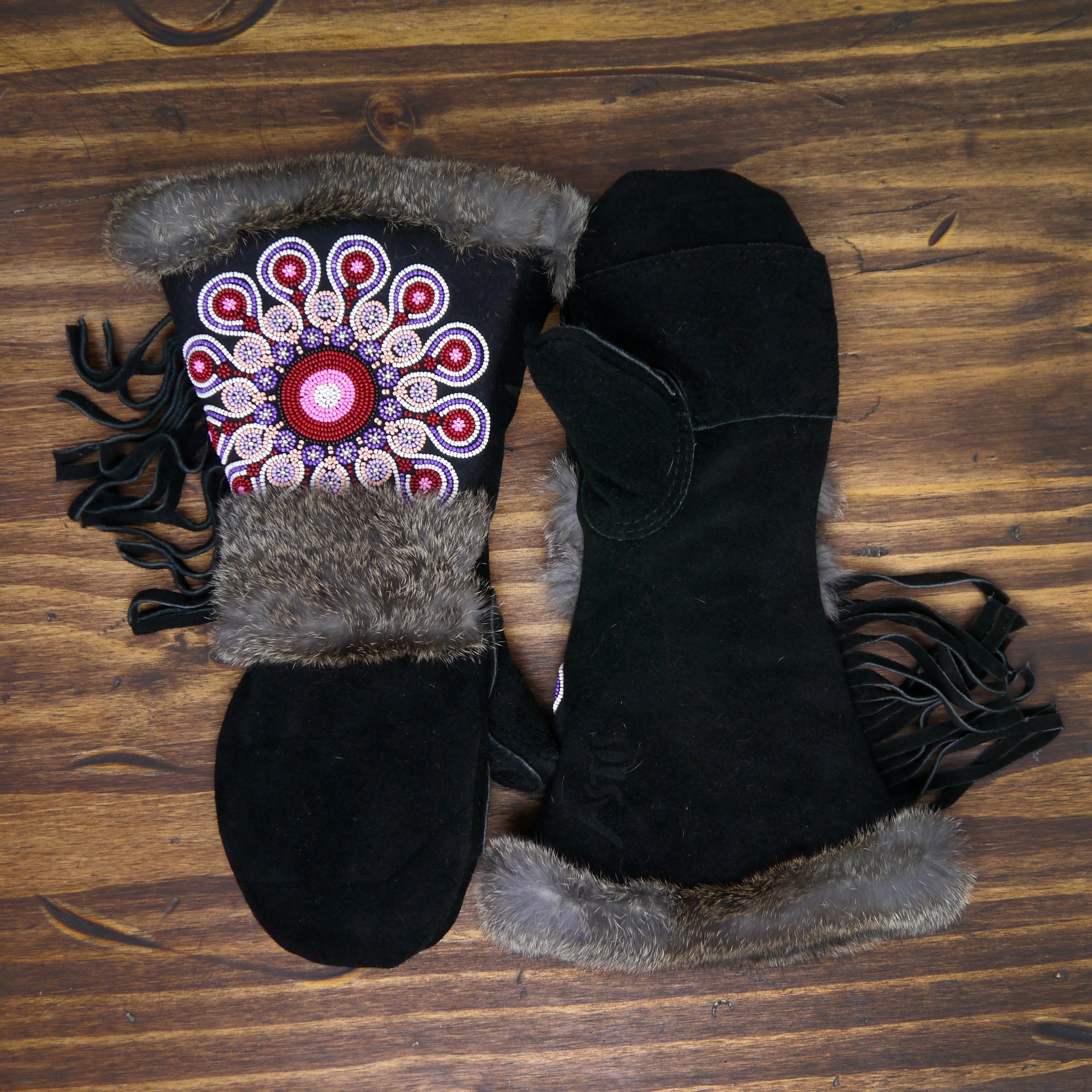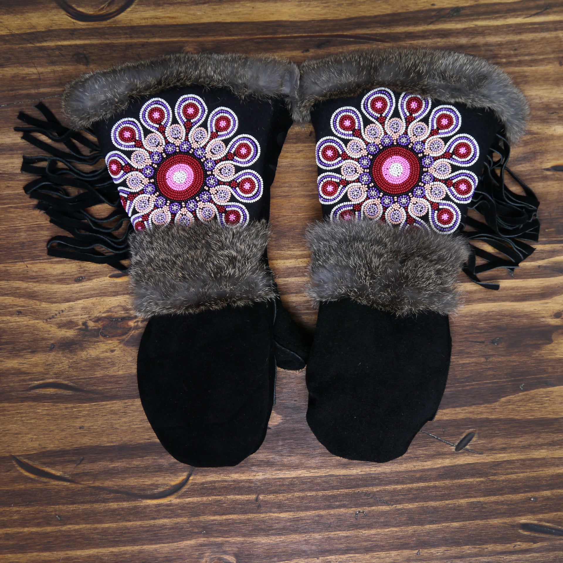 A comfortable, extremely warm mitten designed for any winter adventure, the Fawcett is not only beautiful, but designed with function in mind. The gauntlet allows for a jacket sleeve to slip inside without bunching while the fur around the cuff creates a seal to help keep the snow on the outside. The thumb and palm patches are added to provide extra protection at common wear points. The beadwork is pretty good looking as well.