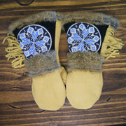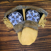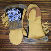 A comfortable, extremely warm mitten designed for any winter adventure, the Kaasen is not only beautiful, but designed with function in mind. The gauntlet allows for a jacket sleeve to slip inside without bunching while the fur around the cuff creates a seal to help keep the snow on the outside. The thumb and palm patches are added to provide extra protection at common wear points. The beadwork is pretty good looking as well.