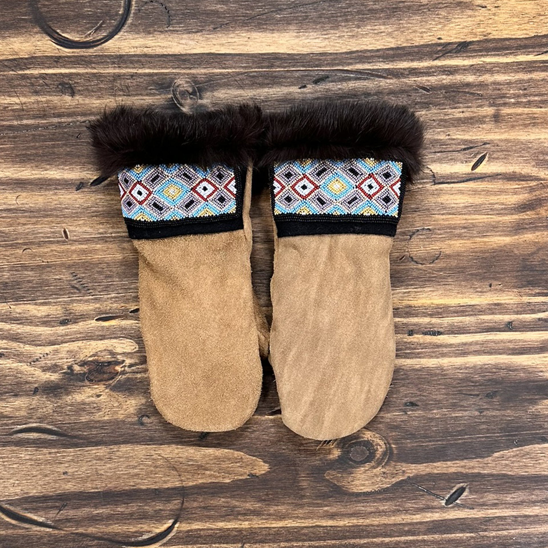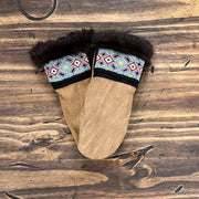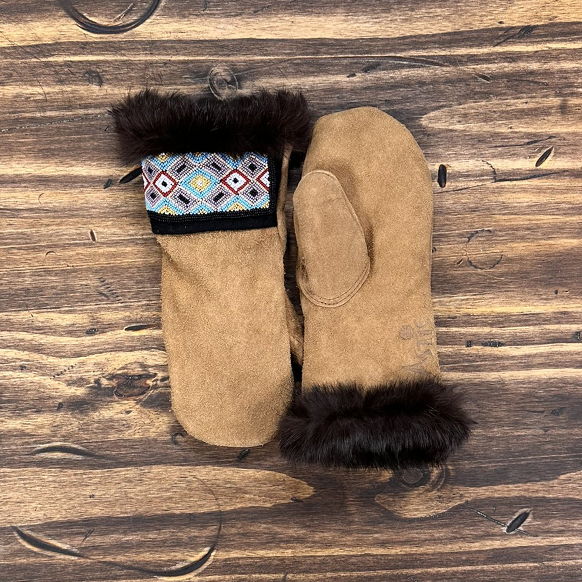 With a redesigned fit and look, our Short-Cuff Mitten has been reshaped, slightly wider through the fingers creating a more comfortable fit. The Montcalm is an elegant, warm mitten designed for any winter activity. Eye catching beadwork is placed across the back of the wrist just below a band of fur that wraps around the cuff providing a seal with your jacket cuff. A morning dog walk? No problem. A day on the slopes? Check. A night on the town? Yup. These mitts do it all and look good while doing it.