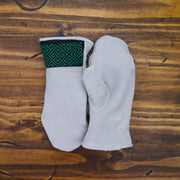 The Damavand short-cuff mitten displays a beautiful beadwork design on top of the hand. They are hand-sewn in the USA from high-quality grey suede leather with hand-stitched beadwork on the back of the hand and are lined with Polartec® High Loft insulation. Working directly with a tannery in the USA, we developed a suede leather, injected with silicone during the tanning process for further waterproofing, that is extremely durable yet retains great dexterity.